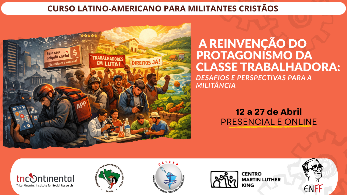 Curso para Militantes INSCRIÇÕES ABERTAS – CURSO L.A. PARA MILITANTES CRISTÃO 2026 A REINVENÇÃO DO PROTAGONISMO DA CLASSE TRABALHADORA: DESAFIOS E PERSPECTIVAS PARA A MILITÂNCIA POLÍTICA 12 a 27 de abril de...